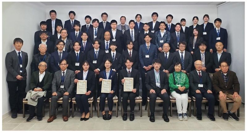 本大会では,依頼講演7件,ポスター発表24件が行われました。依頼講演では,アルミニウムのみならず,ニッケル,ステンレス,マグネシウム合金などのアノード酸化,リサイクルを指向したアルミニウムの電析技術,自己修復能を有するアノード酸化皮膜,蒸気コーティング技術,さらには軽金属のアノード酸化における添加剤の影響など,多岐にわたるテーマについてご講演いただきました。いずれも工業的に注目度の高いトピックスであり,講演後には活発な議論が交わされました。また,本大会が第40回という節目を迎えたことから,これまでの本会の歩みや歴史についての紹介も行われました。ポスター発表では,表面処理,微細構造の形成と機能化,エネルギーデバイス応用など,アノード酸化に関連する幅広い分野の研究成果が発表され,こちらも活発な意見交換が行われました。優れた発表を行った3名の学生には,優秀発表賞(副賞:黒田幸一記念賞)が授与されました(下記参照)。さらに,本会名物のナイトコミュニティーも開催され,参加者の皆様が親睦を深める有意義な交流の場となりました。